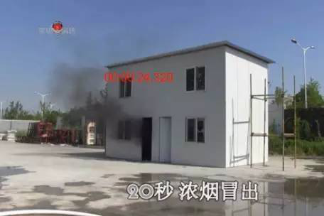 彩鋼夾芯板以顏色涂層鋼板為面材,芯材主要有聚苯乙烯、聚氨酯、巖棉三種。目前彩鋼活動板房的生產者從節省成本的角度考慮多采用聚苯乙烯作為芯材,而聚苯乙烯如果不進行阻燃處理,屬于易燃材料。