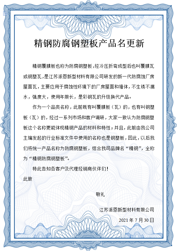 @所有人 精鋼覆膜板更名為精鋼防腐鋼塑板!