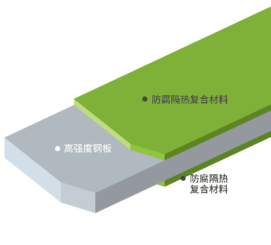 1、精鋼防腐鋼塑板基本結(jié)構(gòu)為0.5mm鍍鋅鋼板正方兩面復(fù)合防腐隔熱復(fù)合材料,總厚度0.67mm。