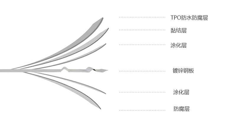 精鋼TPO防水鋼塑板是以TPO(熱塑性聚氯乙烯)防水卷材和鍍鋅鋼板復合的材料,它結合了TPO防水卷材的優異防水性能、隔熱性能和易安裝性能,以及鋼板的強度和穩定性,使其在建筑防水領域表現出色。